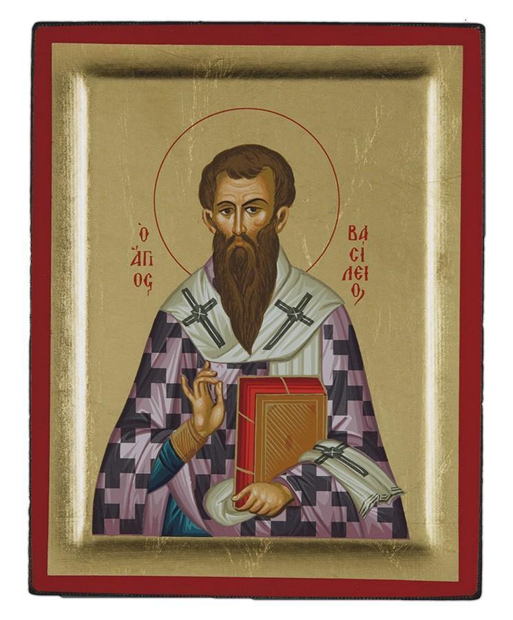 Protector of the poor and weak, Saint Basileios, a Father and Teacher of the Orthodox Church grew up in Caesarea of Cappadocia to noble and wealthy parents with Christian beliefs. He studied philosophy, rhetoric, grammar, astronomy and medicine and taught the art of rhetoric. He lived an ascetic life as a hermit in Egypt, Palestine, Syria and Mesopotamia. He retired at the Monastery of Pontos as a monk; he was ordained as a deacon and a presbyter and by succession he came to the throne of archpriesthood right after Eusebius, at the diocese of Caesarea. He fought against moral decay and reformed monasticism, he built the famous "Vasiliada", a complex of charitable institutions, including an almshouse, orphanage, nursing home, providing food and care to thousands of patients of any age, gender and race. He passed away at the age of 50, on January 1, 378 AD, leaving behind the legacy of his spiritual work.